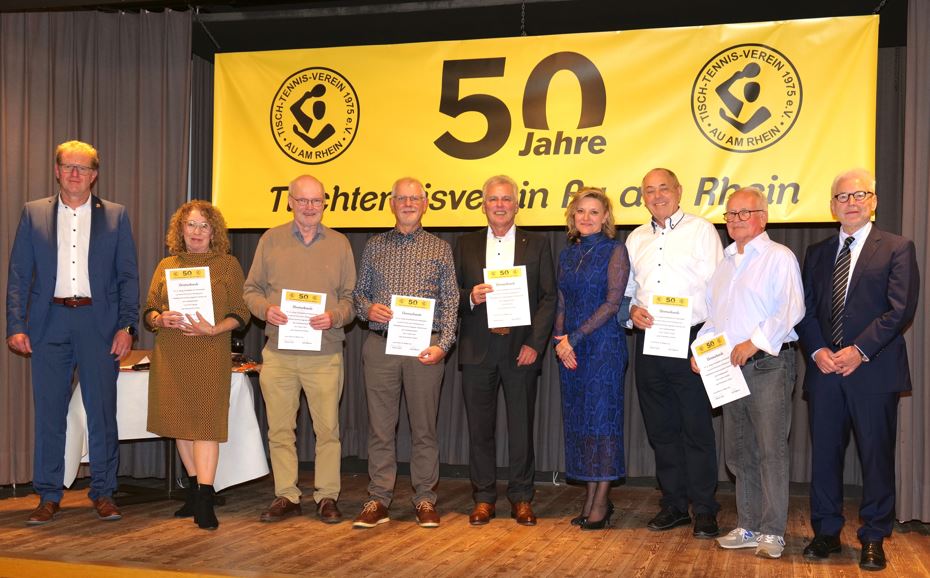Au am Rhein. – Ein halbes Jahrhundert Tischtennis, Gemeinschaft und sportlicher Erfolg: Der Tischtennisverein Au am Rhein feierte am Samstagabend im Saal des Pfarrgemeindezentrums sein 50-jähriges Bestehen. Mitglieder, Ehrengäste und Freunde des Vereins blickten auf fünf bewegte Jahrzehnte Vereinsgeschichte zurück.